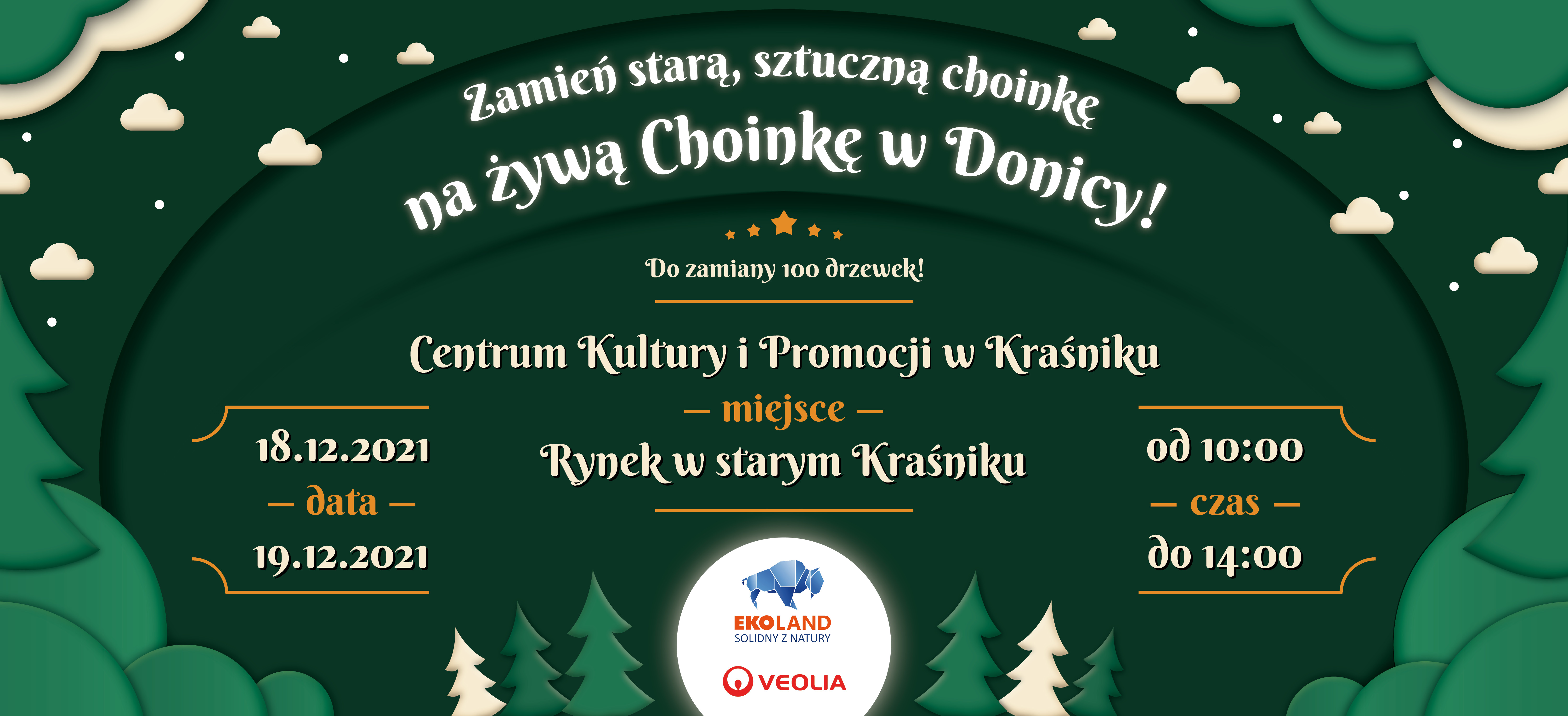 Akcję, która ma za zadanie promowanie ekologicznych postaw, zostanie przeprowadzona w najbliższy weekend. Przez dwa dni, w sobotę, 18 grudnia i niedzielę, 19 grudnia w godzinach od 10 do 14 będzie można dostać żywą choinkę. Drzewka będą czekały w Kraśniku w dwóch miejscach: przed Centrum Kultury i Promocji w dzielnicy fabrycznej oraz na Rynku w Starym Kraśniku.
